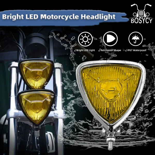 Be the first to review “BOSYCY Motorcycle LED Headlight CustomTriangle Front Spotlight Vintage Head-Lamp, Universal Fit Harley Chopper Bobber Cafe Racer”